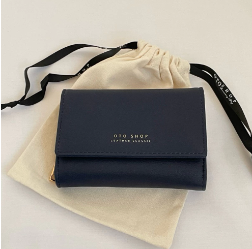 外表為深藍色的錢包,上面印有淺色[OTO SHOP]字樣 |