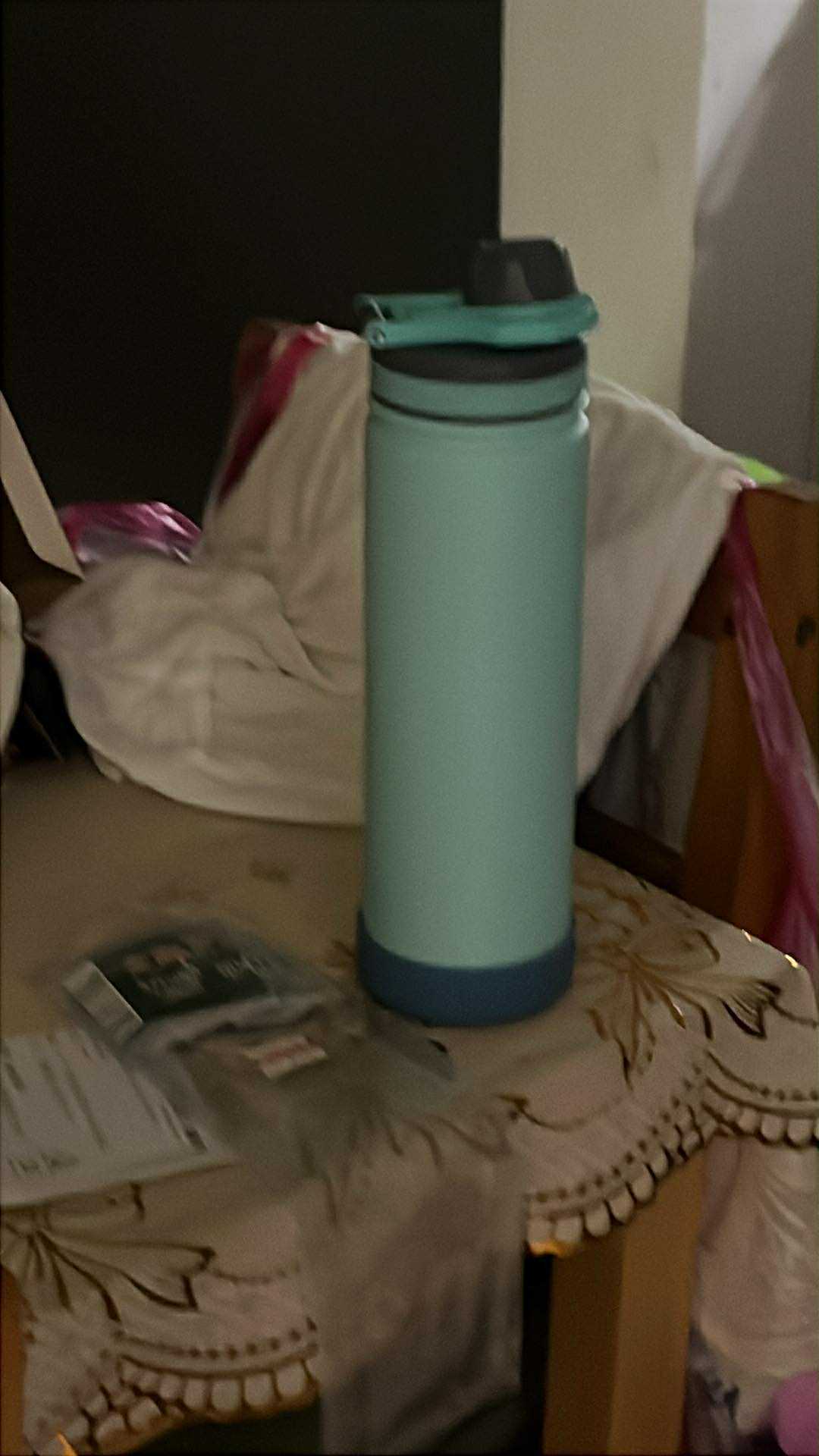 藍色,瓶開口有一個扣環,打開的方式是用轉開的,內有一個粗吸管 |