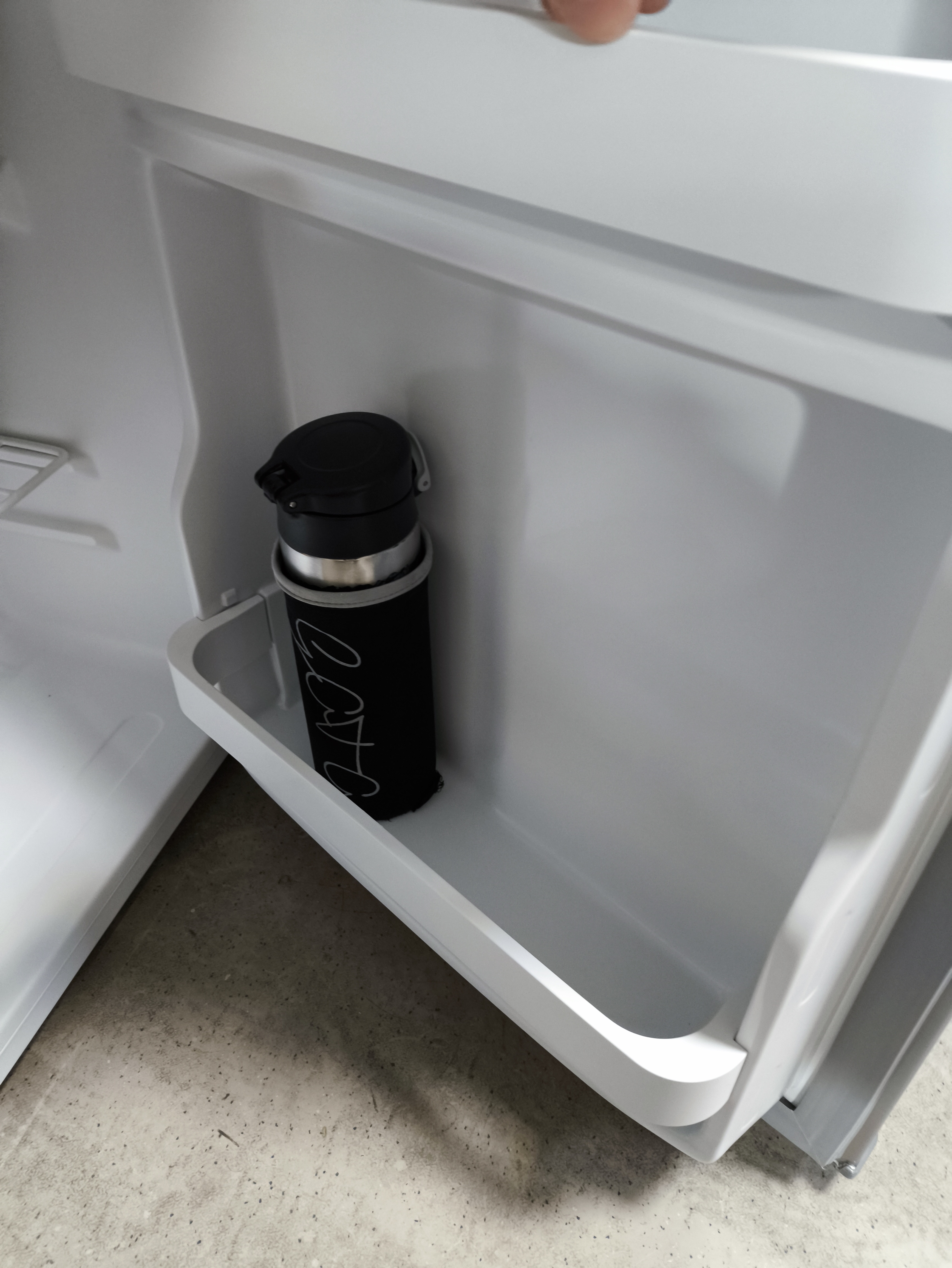 有黑色套子套著的水壺然後有鋼鐵人、索爾的漆面在水壺上 |